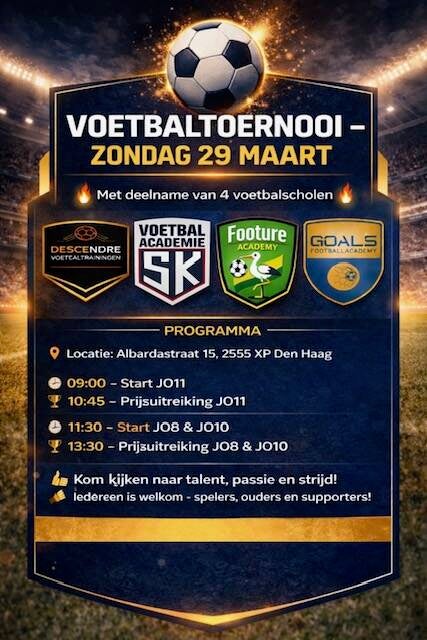 Vanaf 5 jaar ben je welkom bij onze voetbalschool om jouw voetbaldroom na te jagen.